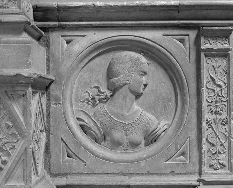 Treizième travée nord, soubassement de la troisième section, médaillon gauche : vue d'ensemble.