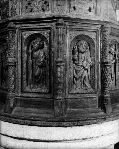 Détail. Panneaux sculptés. Saint Simon et saint Barthélémy.