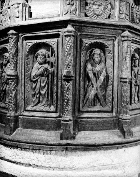 Détail. Panneaux sculptés. Saint Mathieu et saint André.