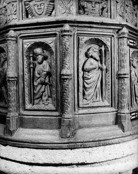 Détail. Panneaux sculptés. Saint Jacques et saint Thomas.