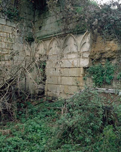 Vestiges du cloître. Arcatures situées au revers du mur sud de l'église.