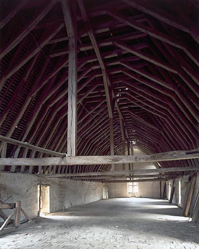 Charpente de l'aile ouest. Vue d'ensemble vers le pignon nord.