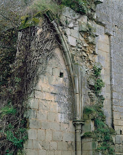 Vestiges de l'église. Colonnette de la 1ère travée du bas-côté sud, situé sur le pignon nord de l'aile ouest.