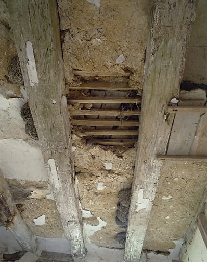 Détail du torchis du plafond du 1er bâtiment situé près de la porterie sud.