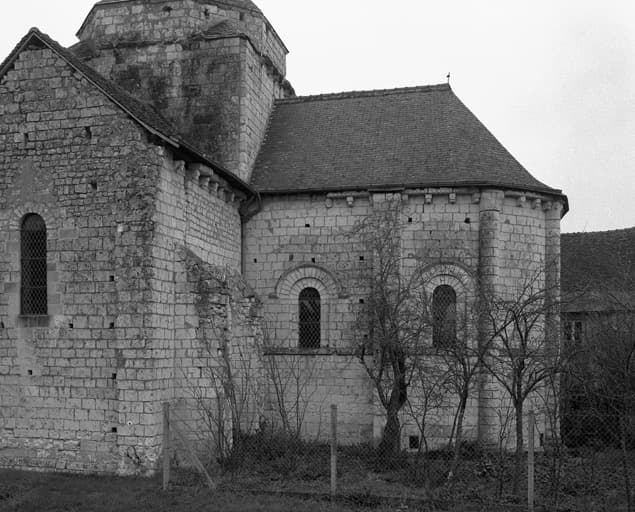 Vue du chevet au sud, du bras sud du transept et d'une partie du clocher.