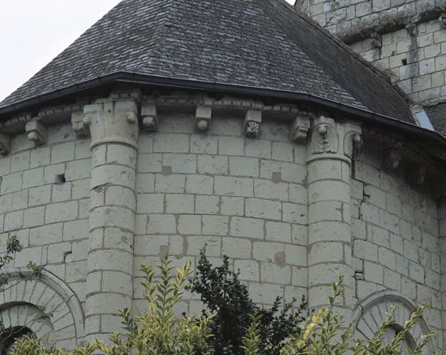 Vue de détail des chapiteaux du chevet, au nord.