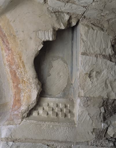 Détail de la base de la colonne du choeur prise dans la maçonnerie de la voûte de la crypte.