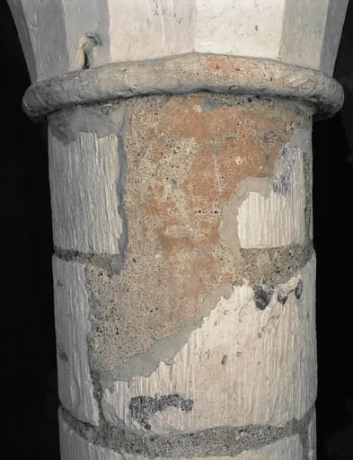 Crypte. 4e colonne sud : traces d'enduit gras et pigments ocre-rouge.
