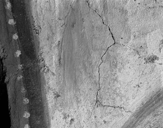 Détail de l'enduit de la figure n°19 avec traces de l'inscription 'IRA'.