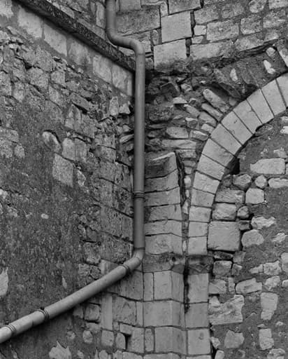 Angle extérieur sud-ouest : départ de la grande arcade de la première travée et départ de l'arc doubleau du bas-côté.