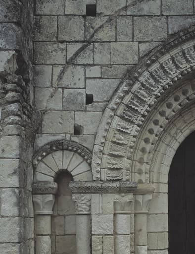 Portail ouest, détail : arc aveugle nord et départ de la voussure.