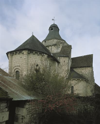 Vue du chevet au nord, de la tour d'escalier et de l'absidiole.