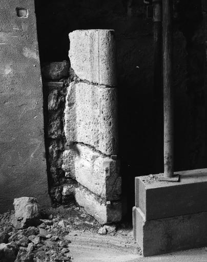 Piédroit gauche partiel du manteau de la cheminée du second étage remonté au rez-de-chaussée.