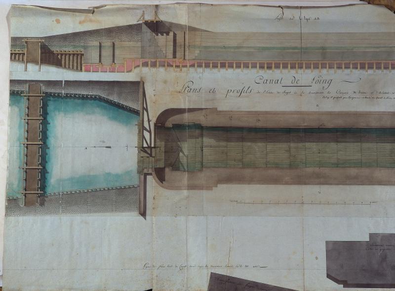 Châlette-sur-Loing : plan et profil de l'écluse de Buges où se réunissent les canaux de Briaez et d'Orléans et celuy de Loing, 25 mai 1809. Détail.