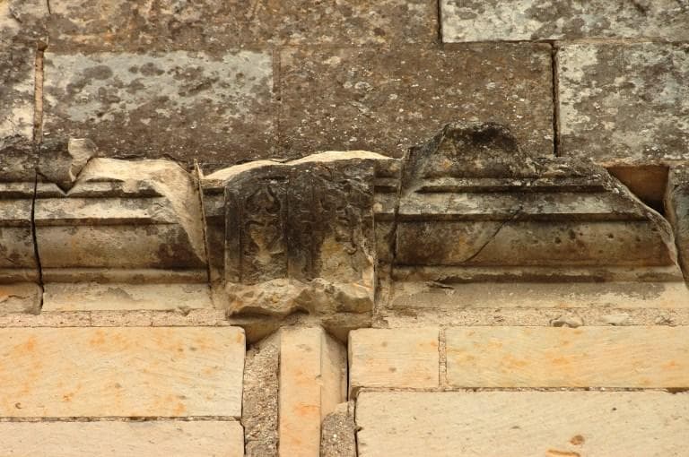 Lucarne gauche de la façade sud : détail de l'agrafe du linteau.