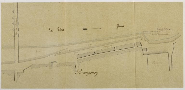 Plan du port de Beaugency, par l'ingénieur Boeckh, 30 septembre 1860. Demande de M. Granger tendant à obtenir l'autorisation d'établir un bateau-lavoir. (archives départementales du Loiret, 2 S 77).