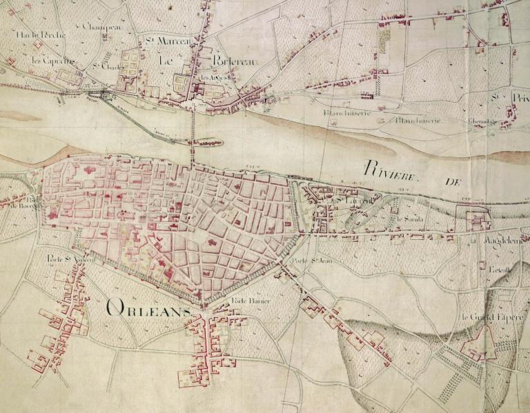 Plan de la Loire, non daté (XVIIIe siècle). Détail. (archives nationales, site de Paris, CP F 14 100 66/3, pièce 3).