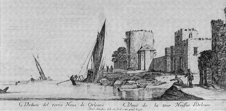 Veue de la tour Neuve d'Orléans par Israël Silvestre, deuxième moitié du XVIIIe siècle.