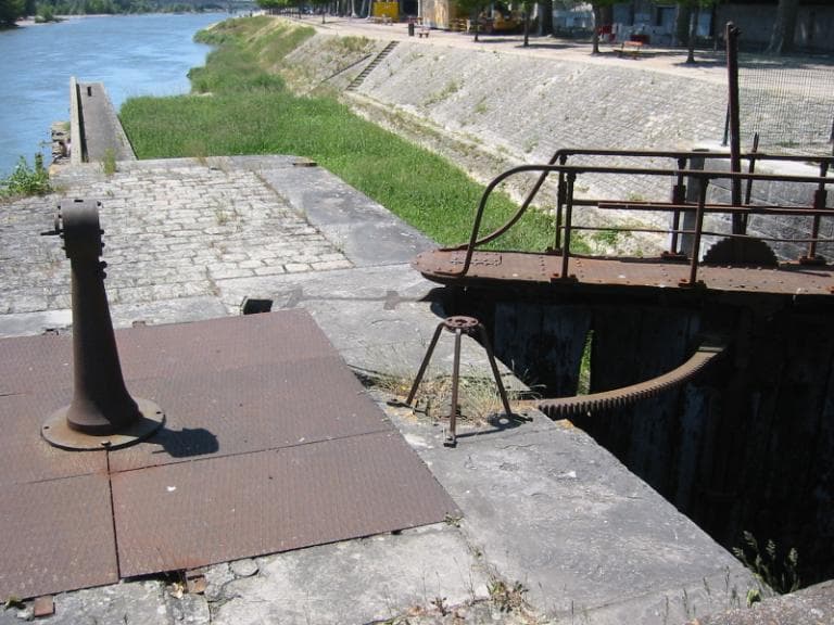 L'écluse d'entrée dans la Loire du canal d'Orléans. Vue prise en 2006 (vers l'aval).