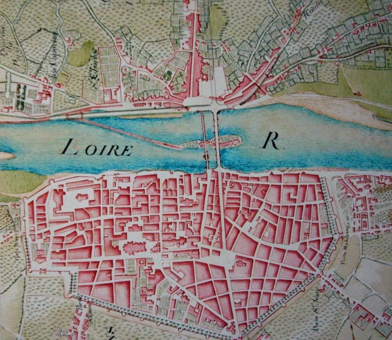 Extrait de l'Atlas de Trudaine, entre 1745 et 1780. (archives nationales, site de Paris, CP F 14 bis 8493, planche 18). ; Extrait de l'atlas de Trudaine (entre 1745 et 1780) : route d'Orléans à Vierzon. (archives nationales, site de Paris, CP F 14 bis 8493, planche 18).