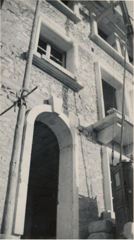 Construction du gros-oeuvre : détail de la façade principale, 1952. (archives municipales de Tours, 101 Fi 5.26).