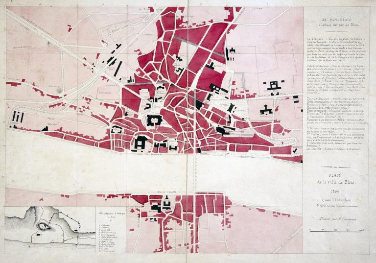 Plan de la ville de Blois avec indication de toutes les voies projetées ou commencées, par A. Trouessart, 1864. (bibliothèque Abbé Grégoire, Blois, RLV 364).