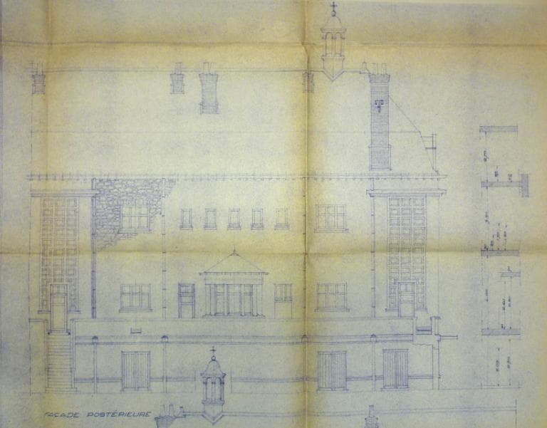 Elévation de la façade postérieure (extrait), Henry Lhéritier de Chézelle arch., 19 octobre 1949. (archives municipales de Tours, Permis de construire 1949/n°647).