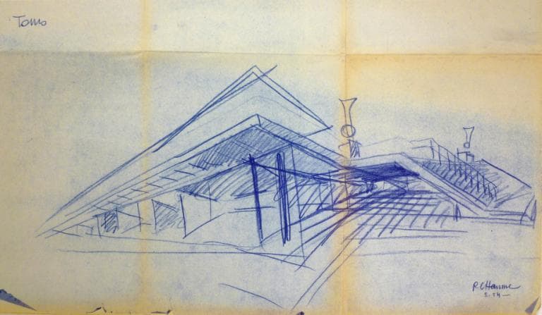 Esquisse en perspective d'une terrasse, R. Chaume arch., février 1954. (archives municipales de Tours, 149 W 21).