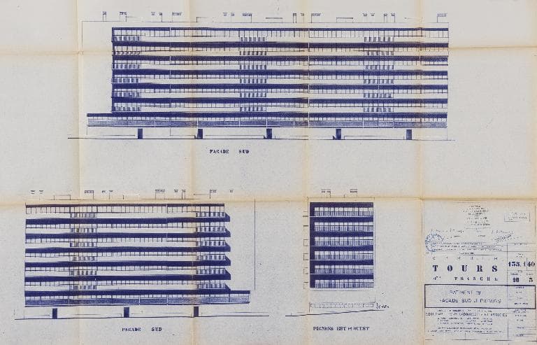 Plan de la façade Sud - 1966. (Archives communales de Tours, section contemporaine, Série W, cote 999 W 122).