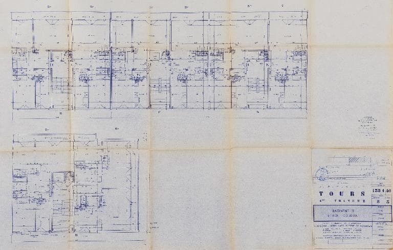 Plan d'étage courant (partie Ouest) - 1967. (Archives communales de Tours, section contemporaine, Série W, cote 999 W 122).