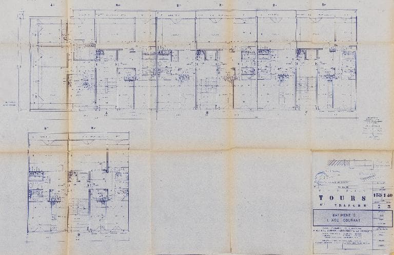 Plan d'étage courant (partie Est) - 1967. (Archives communales de Tours, section contemporaine, Série W, cote 999 W 122).