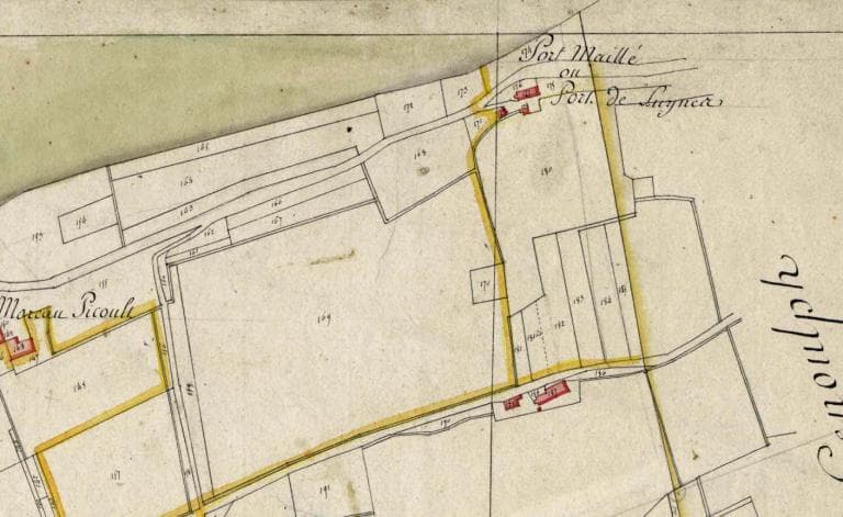 Plan des quays à construire dans toute la longueur de la ville de Tours depuis la levée de Saint-Pierre-des-Corps jusqu'au pont Sainte-Anne, vers 1775, détail : cale au niveau de la place Foire le Roi. ; Plan des quays à construire dans toute la longueur de la ville de Tours depuis la levée de Saint-Pierre-des-Corps jusqu'au pont Sainte-Anne, vers 1775, détail : cale au niveau de la place Foire le Roi.