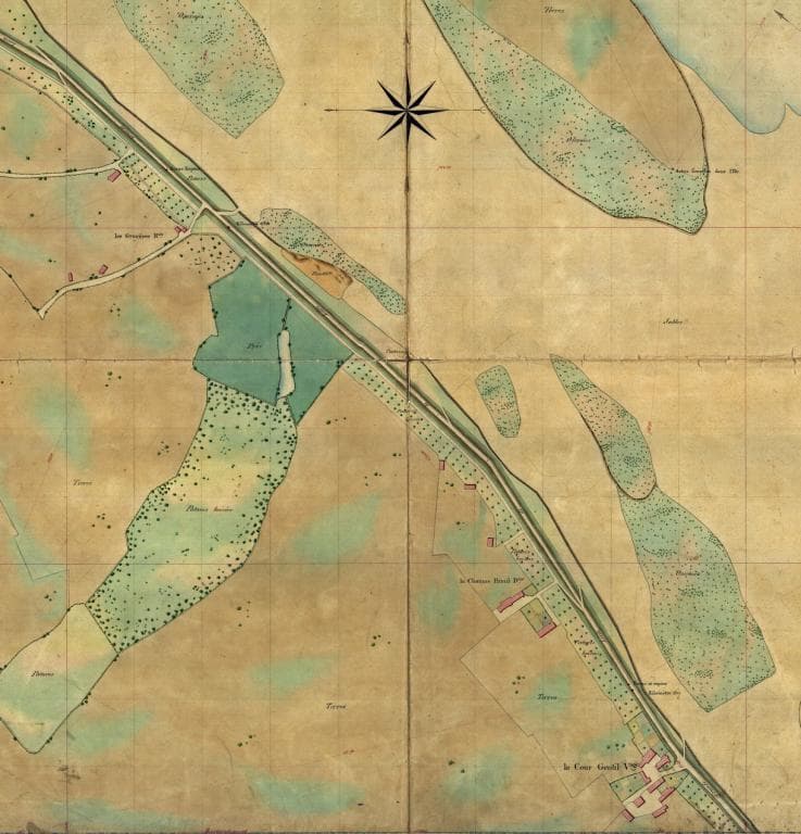 Carte de la Loire dressée par Auguste Grenier en 1851. Détail sur Cours-les-Barres (la Cour Gentil et la Chaume Pamil). (centre d'exploitation de Saint-Satur, subdivision de la direction départementale des territoires de la Nièvre).
