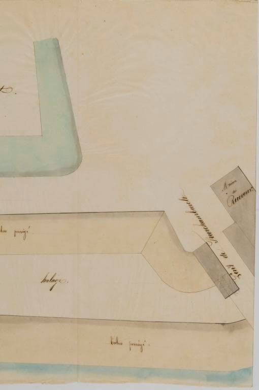 Plan d'une partie de la levée de Givry (rive gauche), 21 juin 1854, ingénieur ordinaire : détail sur la culée du pont de Givry Fourchalmbault et de la maison du receveur. (archives départementales du Cher, 3 S 388).