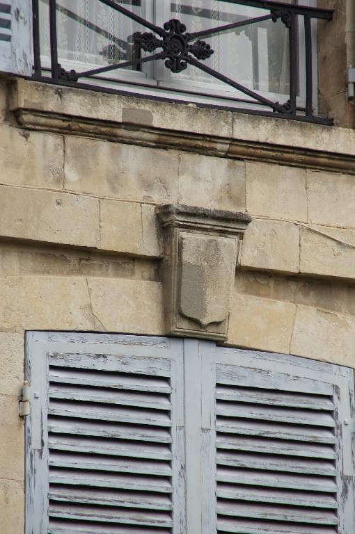 Aile sur rue (bâtiment 1), premier étage, travée centrale, blason.