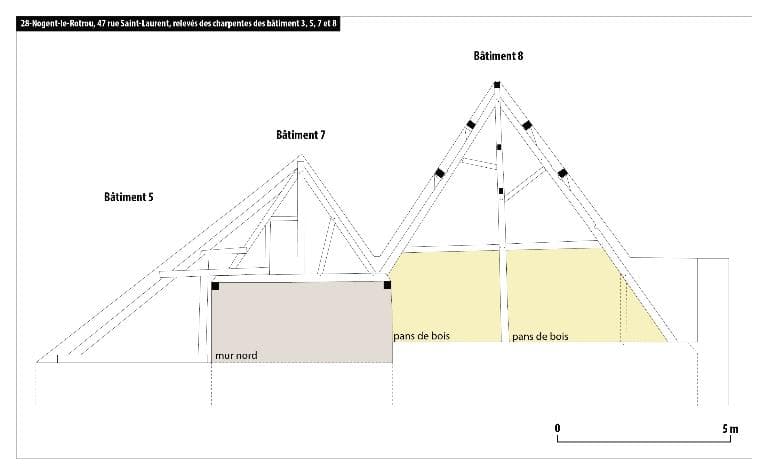Relevés des charpentes des bâtiment 5, 7 et 8.