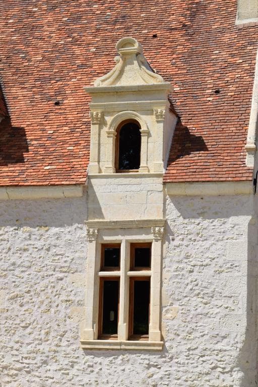 Façade principale, vue de détail d'une travée latérale (lucarne restituée).