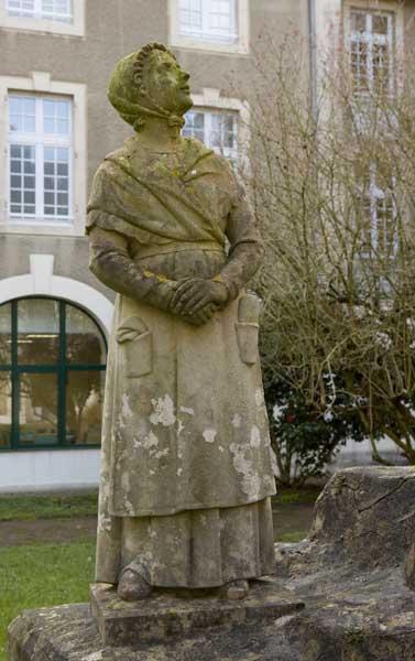 Bâtiment de la Maison de retraite 'Elisabeth de Surville', anciennement bâtiment de la Communauté. Monument du Centenaire (1937), situé dans la cour. Détail d'une figure latérale (jeune fille).