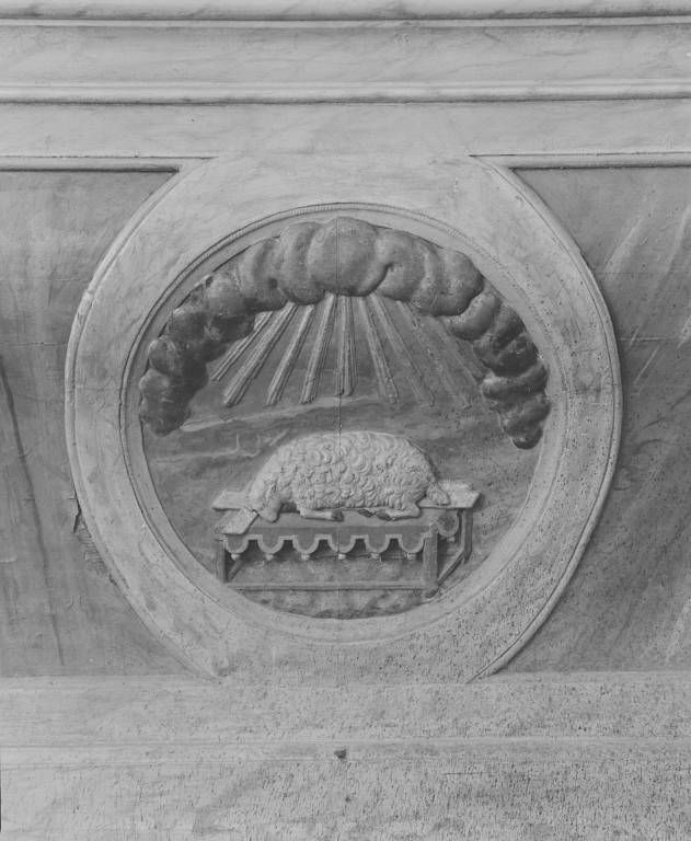 Façade de l'autel, détail : médaillon avec la représdentation de l'Agneau mystique.