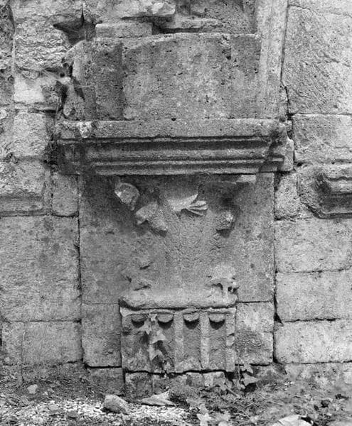 Vestiges de la chapelle, chapiteau, détail, Annonciation