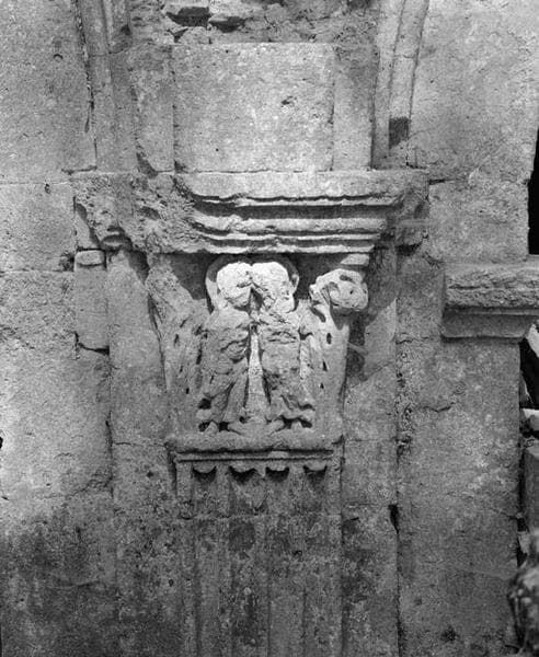Vestiges de la chapelle, chapiteau, détail, Visitation