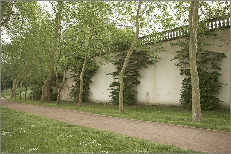 Partie en retour, côté Est, soubassemnt de la terrasse : simulation actuelle des fausses grottes.