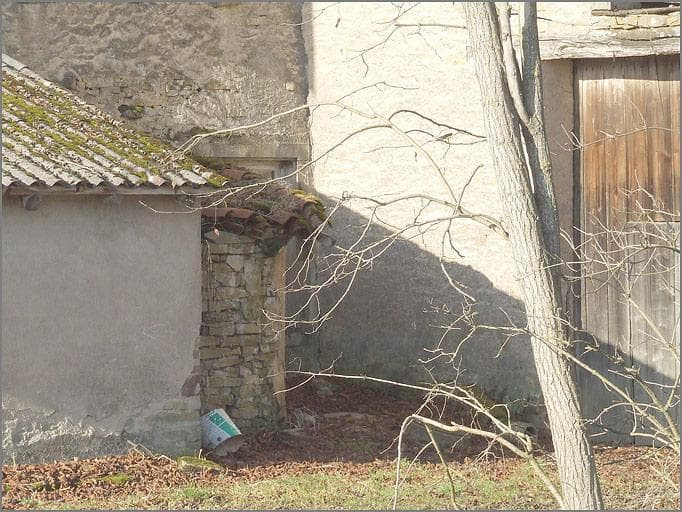 Ferme, élévation latérale droite, four à pain, ensemble trois quarts gauche.