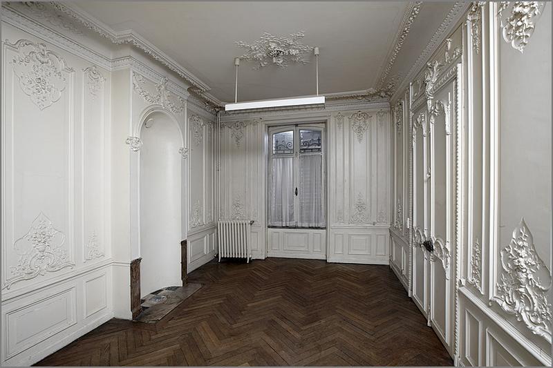 lambris de hauteur ; niche ; porte ; plafond ; parquet