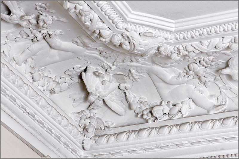 Plafond, détail du décor d'angle, vue rapprochée.