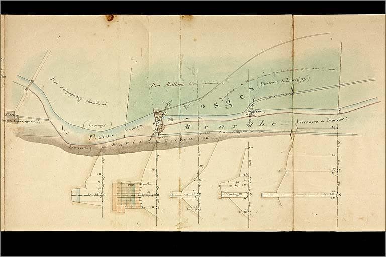 Extrait de plan. Détails du barrage de la scierie du Trupt.