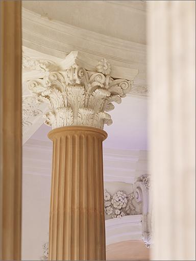 Colonne supérieure, détail d'un chapiteau, après restauration (2010).