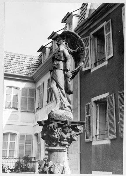 Fontaine des vignerons : statue au sommet de la colonne, vue de profil gauche.