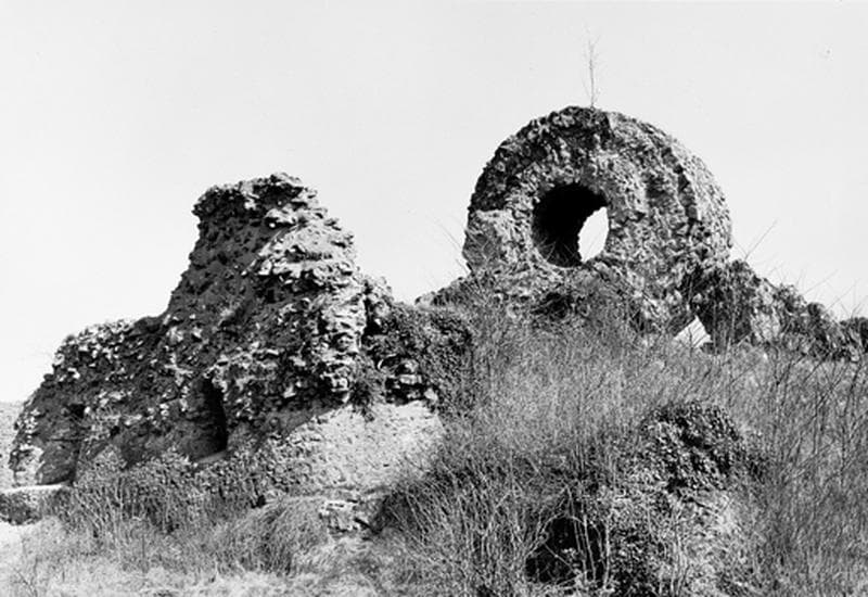 Petit logis et donjon renversé, vus de l'ouest.