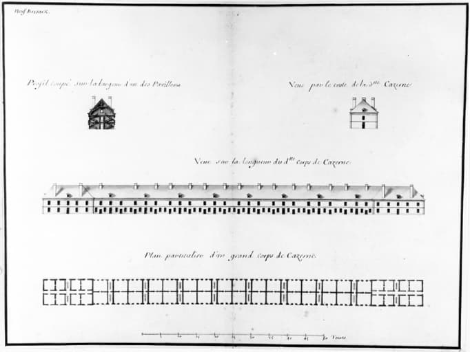 Profil coupé sur la largeur d'un des pavillons.